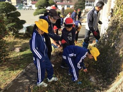 毎月教職員による安全点検は行っていますが、児童たちも自分たちの学んでいる校舎や校庭などの安全点検をすることで、どこに危険な場所があるのかを実際に見ることで、児童の防災意識を高めています。12月6日に縦割り班に分かれて点検しました。