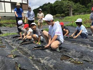 5,6年生が苗の植え方を調べ、下級生に説明をしてくれました。