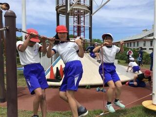 活動班ごとに、はまぐりコースを周りました。コースを周った後はアスレチックで遊びました。