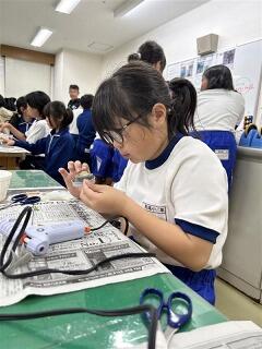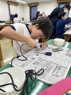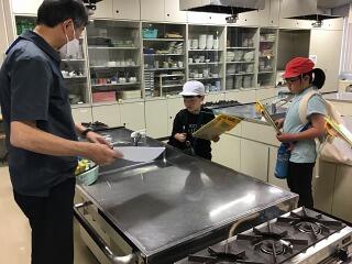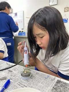 今日は、「湯をわかしてお茶を入れよう!」というめあてでお茶を入れ、供し方(お客様への進め方)を学びました。茶たくにのせる前に、湯呑の底を拭くなど、お客様への気遣いをすることができました。今回は6年生が緑茶、5年生が玄米茶を入れてみました。前の時間はコーヒーのすすめ方も学びました。
