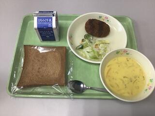 くろしょくパン メンチカツ コールスロー コーンスープ