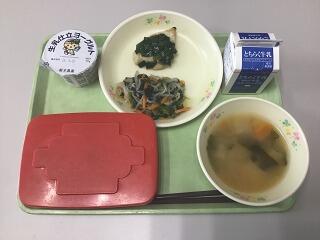 ごはん もろのにらソースかけ わふうあえ かんぴょうのみそしる 県産ヨーグルト