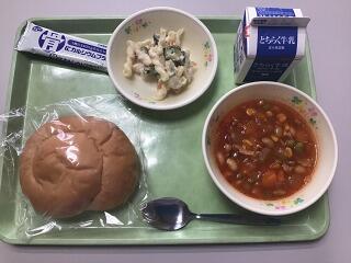 バターロールパン ポークビーンズ マカロニサラダ ウエハース
