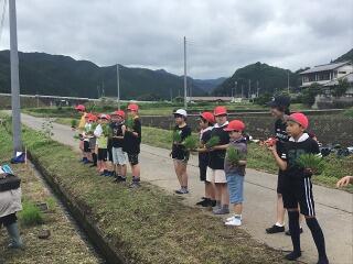 今日の業間は、縦割り班ごとに除草作業を行いました。みんなで協力して活動することができました。
