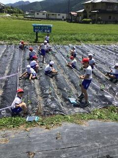 5,6年生が苗の植え方を調べ、下級生に説明をしてくれました。