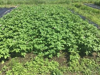 今年度は5,6年生の案で、一畝ずつ交互に「垂直植え」と「ななめ植え」で植えてみました。