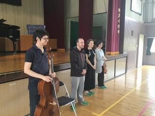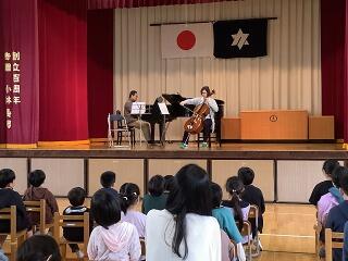 20日(月)にノースダコタ大学のレッドリバートリオ(大学生)のみなさんによる演奏会を粕尾小学校の体育館で行いました。また、大学の先生も一緒に演奏してくださいました。子どもたちは素晴らしい楽器の音色に聞き入っていました