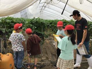 3年生が社会科の学習で、学区内にあるいちご農家さんの見学に行きました。