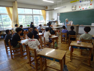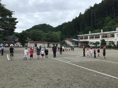 しかし、先日まで天気が悪く、今日は梅雨の晴れ間がのぞきます。そこで、1時間だけですが、全校生が同時に水泳をすることとしました。(1~3年生は2・3校時。4~6年生は3・4校時です。)