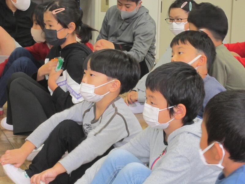 今日は天気予報がはずれて朝から雨。業間にいよいよ持久走大会の練習をスタートする予定でしたが、体育館で体力作りのゲームを行いました。かんたんな鬼遊びでしたが、学年ごとにわかれてみんなむちゅうになって遊んでいました。校庭を走るよりも体力がついたかも?