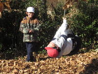 生活科1年「きせつとなかよし」、2年「秋はどこにやってきたの」の授業で、地域のお宅にある雑木林へ2回目の訪問をさせていただき、たくさんの落ち葉やどんぐりなど、秋から冬に向かって変化する雑木林を五感を使って体全身で楽しく遊びました。友だちと遊び方を考えたり、自分から遊びを見付けたりと子供たちの豊かな発想力と体現がとても感じられたひと時となりました。快く雑木林を開放していただき、大変ありがとうございました。