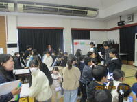 今年度、本校の教育活動や子供たちのために、様々な場面で本校へ足を運んでいただいたボランティアの皆様を招待し、感謝の会を開きました。あたたかな雰囲気の中、子供たちの進行により、代表児童の挨拶や児童の感謝の気持ちをつづったのメッセージカード、そして全児童からの心のこもった歌の贈り物を受け取ったボランティアの皆様からは、「子供たちの歌に涙がでてきた」「こんな素敵な会に呼んでいただけてありがたい」などの声をいただきました。今年度、大変お世話になり、ありがとうございました。