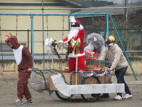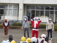 下校の際には、サプライズでお見えになったサンタさんたちから、児童にクリスマスプレゼントをいただきました。