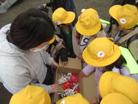 クリスマスのお菓子を受け取った子供たちは、とてもうれしそうに、中身にワクワクしながら下校していきました。素敵なプレゼントを本当にありがとうございました。
