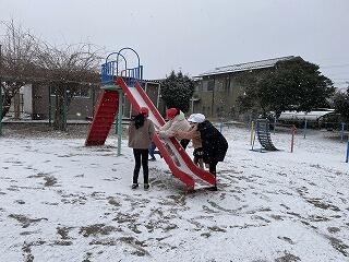10年に一度といわれる大寒波が襲来し、菊西小の校庭にも雪が積もりました。休み時間には、思い思いに雪遊びを楽しみました。