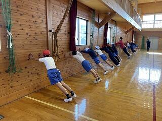 業間には、縄跳び記録に向けて、学年ごとに練習に励んでいます。抜けるような青空の下、寒さに負けず、みんなで励ましあいながら練習を重ねています。