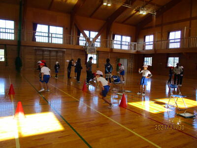 5・6年生ブロックと3・4年生ブロックの子どもたちが、サーキットトレーニングの授業に挑戦しました。ご指導くださったのは、栃木県のエキスパートティーチャーとしてご活躍されているお二人の先生です。先生方は自らを「うっきーとここあ」と名乗り、実に楽しい雰囲気で子どもたちのやる気を引き出してくださいました。寒さにも負けず、「あー、楽しかった!」と汗を拭く子どもたちの笑顔は最高でした。体を動かす楽しさをいっぱい味わって、心身ともに元気に成長してほしいと願います。
