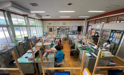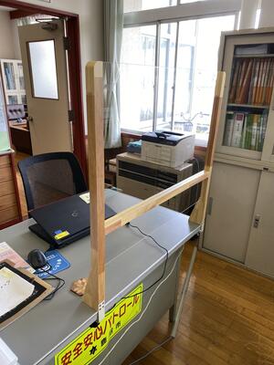 「感染症対策等の学校教育活動継続支援事業(国庫補助事業)」により、職員室と給食室にパーテーションを設置しました。本校のランチルームには既に、立派なパーテーションが設置されています。今回、職員の感染症対策としての追加設置です。