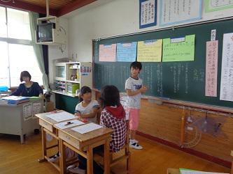28日に鹿沼市教育委員会の清野竜一指導主事をお招きし、研究授業を行いました。5年生の学級活動で話合いの学習です。5年生は、9月に行う臨海自然教室に向けて今のクラスをさらにパワーアップし、クラスの絆をより深めて行くにはどうしたらよいかを話し合いました。議長団を中心にそれぞれ自分の考えを積極的に発表し、話合いも盛り上がりました。清野先生からも子ども達はそれぞれが自分の役割に真剣に取り組みたくさん意見が発表できてよい話合いができていたとの講評をいただきました。5年生もよい経験をし、自信をもったようです。今後の5年生の活躍を期待しています。