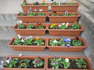 ブルーや紫、黄色など、色とりどりに咲いたパンジー。小さな種から、希望の家の方が大切に世話をして花を咲かせてくださいました。今度は、菊西小で引き継ぎ大切に育てていきたいと思います。たくさんのパンジーの花で、学校が明るくなりました。希望の家の皆様、ありがとうございました。