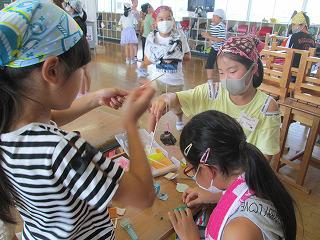 1日目の活動は、塩づくり。海水から作った塩のしょっぱさを何度も味見。自分で作った唯一の塩に大満足。サンドブラストグラス作りでは、思い思いの素敵なデザインのコップに、これも大満足。ナイトハイクでは、真っ暗な海の波音を聞いて、ちょっぴり怖がり自然の偉大さを感じました。