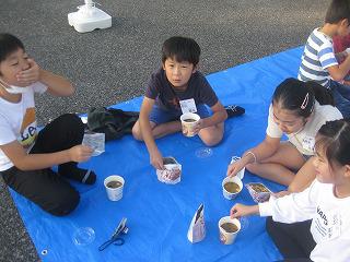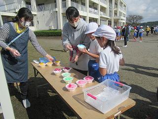 終了後は、PTA執行部と菊西ボランティアの方から、子どもたちにかき氷が振る舞われました。中学生も小さい子も保護者の方も、みんなで味わい、またまた笑顔。みんなが主役、みんなで一つになった感動フェスティバルでした。