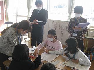 今回の研究授業は4年生です。説明文を読んで、要約する学習です。「要約」とは、文章全体の構成をとらえて、伝えたい内容を短くまとめること。要約に必要な言葉を説明文から抜き出し、グループで話し合い検討します。そして、そのキーワードとなる言葉を入れながら、要約をしていきます。大人でも難しい要約。子どもたちは、一生懸命考え、要約をしていきます。真剣に学ぶ4年生の姿に、成長を感じます。