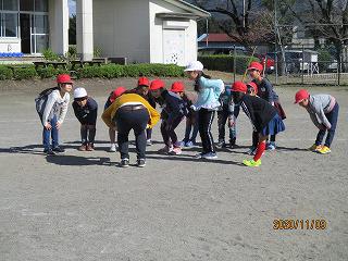 菊西フェスティバルが終わって、気持ちのよい青空の下、久しぶりのなかよし班共遊です。後期の児童会のみなさんと6年生が中心となって、全校みんなで楽しむ時間です。なかよし班では、6年生のアイデアで、しっぽとり鬼ごっこやけいどろかくれんぼ、マスじゃんけんなどで遊びました。その後は、おなじみの体じゃんけん。新しいじゃんけんキングも決まり、12月のなかよし班共遊も楽しみです。