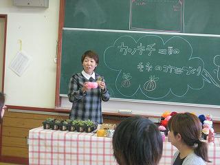 10月12日(金)に家庭教育学級が行われました。カンキチ工房の大金久美子先生をお迎えして、「毛糸のコケ玉作り」を行いました。好きな多肉植物と色とりどりの毛糸を選んでコケ玉に巻き付けていきます。コツをつかむと速くきれいに巻けるようになり、大金先生の巧みなトークに大笑いをしながら、あっという間にオリジナルのかわいらしい毛糸のコケ玉がたくさんできあがりました。