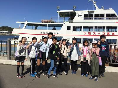10月14日 AM6:30 全員そろって元気に出発。バスの中でガイドさんのクイズとお話を楽しみながら、あっという間に目的地に到着。バス酔いする人もいませんでした。ワクワクドキドキがとまりません。