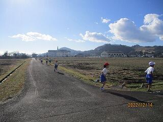 12月14日に行った持久走大会。天候に恵まれ、一人一人が自分のめあてに向かって、一所懸命頑張りました。恒例のスタート時に宣言する自分のめあて。「〇位以内になりたいです。」「試走より、速いタイムを出したいです。」「同じペースで走りたいです。」など、どれも自分自身を見つめた立派なめあてです。そのめあてに向かって、全員が最後まで頑張りぬきました。子供たちが力を発揮できたのも、早朝から走路整備をしてくださった地域の方や安全を見守るボランティアの皆様のおかげです。また、沿道で大勢の保護者や地域の皆様に御声援をいただいたのも、大きな力となりました。本当にありがとうございました。