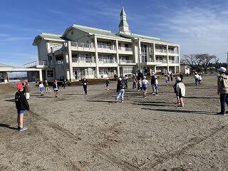 業間には、抜けるような晴天の下、縦割り班ごとに共遊を楽しみました。