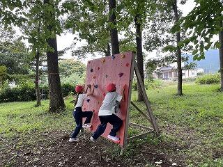 ターザンのように「アーア アーーー」 手作りのボルダリングもあって、すごい!