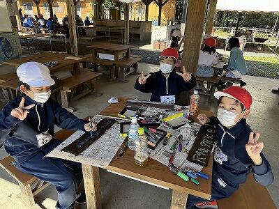 2日目もお天気に恵まれ晴天でした。昨日の火起こし体験で起こした火種を使って、杉板焼きを行いました。板をのこぎりで切って真っ黒になるまで焼き、それをたわしとぞうきんで磨きました。そのあと、思い思いに字や絵を描いて、すてきなお土産が出来上がりました。2日間の思い出をたっぷりと頭と心に詰め込んで帰りました。