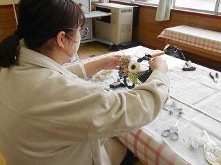 その後、花のアトリエTamazoの軽部弥生様を講師にお招きし、卒業式でつけるコサージュ作りを行いました。毎年6年生の学年PTAで実施しているコサージュ作りです。大人の方の体験教室と同じ作り方だそうですが、親子で力を合わせて皆さんとてもきれいなコサージュを仕上げました。卒業式に付けるのが、今からとても楽しみです。