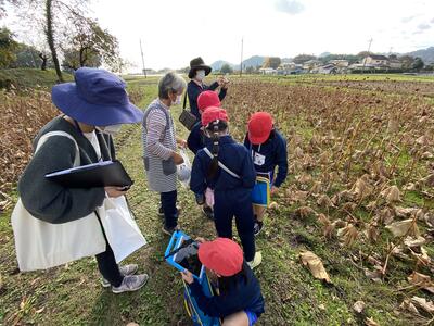 木漏れ日の中、菊沢地区の植物や動物、昆虫の生態について詳しく教えていただいたり、子どもたちから質問したりして、とても楽しく学習しました。