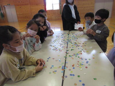 コロナ禍の影響で延び延びになっていた来入児学校参観をようやく実施することができました。1年生が生活科の授業で手作りした昔の遊びグッズを使ってみんなで遊びました。松ぼっくりけん玉、どんぐりやじろべえ、どんぐり迷路、どんぐりコマ、おはじき、お手玉、だるま落とし。どれもみんな1年生の自信作ばかり!アイディアいっぱい、楽しさ満点です。皆さんの入学を楽しみにしています。