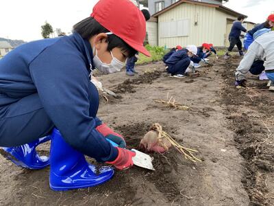 1・2年生が、さつまいもを収穫しました!春に、一緒に苗植えをした希望の家の皆さんもお手伝いに駆けつけてくださいました。よいしょ、よいしょ、まだまだあるぞ!1・2年生は思った以上に力持ちです。加えて、希望の家の皆さんが、大きなシャベルで土を力強く掘り起こしてくださいました。うわっ、でたっ、すごーい!終わりの会では、喜びいっぱいの大きな声で「ありがとうございました」が言えました。希望の家の皆様、たいへんありがとうございました。