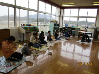 昼休みに、図書支援員さんが大型絵本の読み聞かせを行ってくださいました。興味のある人は誰でもどうぞ!なんてうれしいお誘いなのでしょう。今日の本は「ふゆのよるのおくりもの」というクリスマスにちなんだお話でした。すてきな時間をありがとうございました。