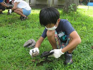 勉強の後はドッジボールで運動です。赤組親子対白組親子で対戦しました。ボールが2つ入ると急に目つきが変わり、親も子も真剣そのものです。みんな息を弾ませながら、大変盛り上がりました。