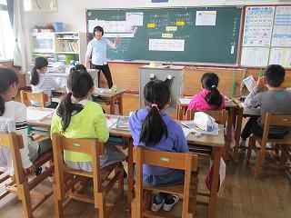 お菓子の値段は、いくら? 投稿日時 : 2018/10/15 校長 今日は、3年生の研究授業でした。1箱に5コ入りのお菓子が2箱。お菓子は1コ75円です。お菓子の値段は全部でいくら?こんな問題をかけ算を使って考えました。さあ、暗算で答えが出せますか?いい方法があるんです。子ども達は、式に表し一生懸命考えました。