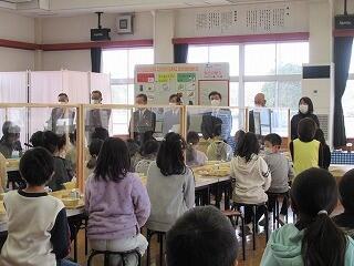 「かぬま和牛ステーキランチ」会食会 投稿日時 : 2020/12/17 管理者_ 給食にかぬま和牛のステーキが出る!かぬま和牛振興会会長様、鹿沼市長様はじめ7名のお客様もお見えになり、新型コロナウイルス感染症対策を万全に講じながら、華やかな会食会が行われました。立派なお肉に、調理員さんも大張り切り。美味しい笑顔がランチルームいっぱいに広がりました。