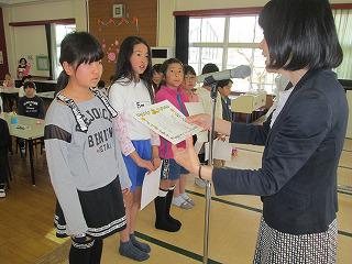 「はい!」の返事がすばらしい 投稿日時 : 2019/04/23 校長 今年度から始まった「あいさつリーダー」毎朝、教室を回り元気な声で「おはようございます!」とあいさつのお手本を見せてくれました。今日は、素晴らしいあいさつができた「あいさつリーダー」のみなさんの表彰です。名前を呼ばれて、元気な声で「はい!」と返事をして賞状を受け取り、うれしそうです。気持ちのよいあいさつが、学校中広まっています。