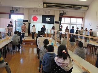 3学期始業式 投稿日時 : 2021/01/12 管理者_ 1月8日、いよいよ3学期が始まりました。始業式では、各学年の代表児童が、がんばりたいことや楽しみにしていることを元気に発表しました。聞いている児童のわくわく感も伝わってきました。子どもたちの意欲がなんとも嬉しい始業式です。コロナ禍の中ではありますが、職員、児童、保護者等、全員の知恵と心を合わせて、楽しく頑張る3学期にしたいと思います。本年もどうぞよろしくお願いいたします。
