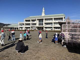 業間には、抜けるような晴天の下、縦割り班ごとに共遊を楽しみました。