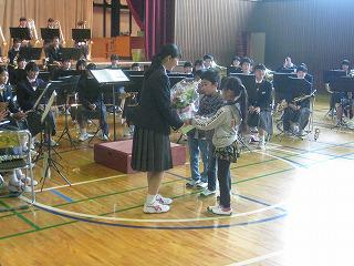 北中生の演奏に感動! 投稿日時 : 2019/10/31 校長 今日は、吹奏楽部の演奏を聞きに、全校児童で北中学校におじゃましました。体育館に入ると、たくさんの中学生が並び、音合わせをしている様々な楽器の音色が響いています。小学生たちは、初めて見る様子に緊張気味。いざ、演奏が始まると、体育館いっぱいに広がる迫力ある演奏に圧倒され、美しい音色の重なりに、小学生たちは、真剣な表情で聴き入りました。中学生の奏でる素晴らしい演奏に、職員一同も感動です。楽器の紹介や「パプリカ」のダンスなど、小学生に合わせた楽しい内容も考えていただきました。アンコールでは「となりのトトロ」の演奏に合わせ、全校で合唱し会場が温かい雰囲気に包まれました。本校の卒業生の顔も見られ、立派に成長した姿に、また感動でした。北中吹奏楽部の生徒さん、素敵な演奏をありがとうございました。また、お忙しい中、この企画を受け入れてくださった北中学校の先生方に感謝致します。子どもたちは、中学生にあこがれ、親近感がもてたようです。これからも本校の卒業生を、どうぞよろしくお願いします。