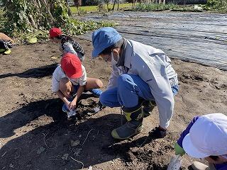 11月20日、1・2年生が春希望の家の皆さんと一緒に植えたサツマイモの収穫を行いました。