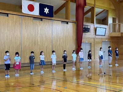校長先生からは、「全員が元気に勉強や活動ができたこと」「みんなのあいさつが上手になって元気をたくさんもらったこと」「通信表のお便り欄を家族と一緒に読んで、自分の良いところに自信をもってほしいこと」などのお話をいただきました。夏休みは、「自分で考えて行動できる力を発揮するチャンス!!」と励ましていただきました。