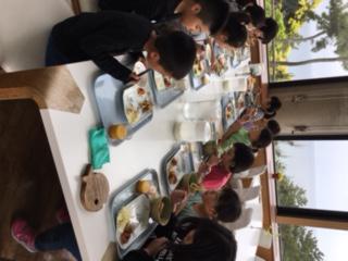 今日の給食はカレーでした。本校は自校給食です。しかも学校でご飯を炊いています。そのため、ご飯も炊き込みご飯やサフランで炊いたご飯などバラエティーに富んでいます。今日はカレーとサフランのご飯でした。しかもカレー用の大皿も購入してもらったので、写真のような給食になりました。やっぱりカレーは大皿にごはんがよそられ、しかもその上にカレーがかかっているのがうれしいですね。子どもも職員も黙々と食べていました。