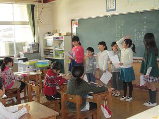 2019年4月の記事一覧 2019年4月 全ての記事 カテゴリ 今日の出来事 連絡事項 保健室より 1年生 2年生 3年生 4年生 5年生 6年生 アーカイブ 2026年1月 (0) 2025年12月 (0) 2025年11月 (0) 2025年10月 (0) 2025年9月 (0) 2025年8月 (0) 2025年7月 (0) 2025年6月 (0) 2025年5月 (0) 2025年4月 (0) 2025年3月 (0) 2025年2月 (0) 2025年1月 (0) 2024年12月 (0) 2024年11月 (0) 2024年10月 (0) 2024年9月 (0) 2024年8月 (0) 2024年7月 (0) 2024年6月 (0) 2024年5月 (0) 2024年4月 (0) 2024年3月 (0) 2024年2月 (0) 2024年1月 (0) 2023年12月 (0) 2023年11月 (0) 2023年10月 (0) 2023年9月 (0) 2023年8月 (0) 2023年7月 (0) 2023年6月 (0) 2023年5月 (0) 2023年4月 (0) 2023年3月 (11) 2023年2月 (16) 2023年1月 (10) 2022年12月 (4) 2022年11月 (1) 2022年10月 (6) 2022年9月 (15) 2022年8月 (0) 2022年7月 (1) 2022年6月 (4) 2022年5月 (2) 2022年4月 (3) 2022年3月 (10) 2022年2月 (5) 2022年1月 (4) 2021年12月 (13) 2021年11月 (14) 2021年10月 (12) 2021年9月 (9) 2021年8月 (4) 2021年7月 (15) 2021年6月 (15) 2021年5月 (19) 2021年4月 (11) 2021年3月 (10) 2021年2月 (10) 2021年1月 (9) 2020年12月 (7) 2020年11月 (19) 2020年10月 (16) 2020年9月 (14) 2020年8月 (8) 2020年7月 (11) 2020年6月 (16) 2020年5月 (10) 2020年4月 (12) 2020年3月 (3) 2020年2月 (12) 2020年1月 (9) 2019年12月 (15) 2019年11月 (9) 2019年10月 (14) 2019年9月 (17) 2019年8月 (6) 2019年7月 (18) 2019年6月 (25) 2019年5月 (2) 2019年4月 (11) 2019年3月 (13) 2019年2月 (29) 2019年1月 (10) 2018年12月 (10) 2018年11月 (19) 2018年10月 (34) 2018年9月 (17) 2018年8月 (10) 2018年7月 (16) 2018年6月 (17) 2018年5月 (36) 2018年4月 (7) 2018年3月 (9) 2018年2月 (9) 2018年1月 (7) 2017年12月 (10) 2017年11月 (16) 2017年10月 (21) 2017年9月 (14) 2017年8月 (5) 2017年7月 (7) 2017年6月 (12) 2017年5月 (5) 2017年4月 (4) 2017年3月 (5) 2017年2月 (4) 2017年1月 (1) 2016年12月 (0) 2016年11月 (1) 2016年10月 (0) 2016年9月 (1) 100件 1件 5件 10件 20件 50件 100件 やさしい上級生と一緒 投稿日時 : 2019/04/24 校長 今日は、一年生を迎える会です。上級生たちの拍手で、体育館に入場してきた一年生。とってもかわいいですね。「チョコバナナが好きです。」「ドラえもんが好きです。」一人一人名前と好きなものを伝え、自己紹介しました。その後、なかよし班で上級生と一緒に、だるまさんがころんだやへびおに、中当てなどで遊びました。最後に、6年生から手作りのメダルをかけてもらい、うれしそうです。みんな、菊西小の大切な子どもたちです。元気いっぱい大きく成長してほしいです。 「はい!」の返事がすばらしい 投稿日時 : 2019/04/23 校長 今年度から始まった「あいさつリーダー」毎朝、教室を回り元気な声で「おはようございます!」とあいさつのお手本を見せてくれました。今日は、素晴らしいあいさつができた「あいさつリーダー」のみなさんの表彰です。名前を呼ばれて、元気な声で「はい!」と返事をして賞状を受け取り、うれしそうです。気持ちのよいあいさつが、学校中広まっています。 1年生もいよいよ仲間入り 投稿日時 : 2019/04/23 校長 先週まで4時間で早帰りだった1年生。今日から、5時間授業でお掃除当番の仲間入りです。なかよし班みんなで並んで「おねがいします。」のあいさつをしてスタートです。ほうきの持ち方、はき方など、上級生がていねいに教えてくれました。これからも、上級生をお手本に、お掃除を上手になろうね。 お祝い献立 うれしいね! 投稿日時 : 2019/04/23 校長 入学式から、2週間がたちました。今日の給食は、入学お祝い献立。「祝」の文字のなるとが入った「お祝い吉野汁」「お祝いデザート」などうれしいメニューです。1年生もランチルームで上級生と一緒においしくいただきました。1年生、おいしい給食をもりもり食べて大きくなってね。 安全太郎くん 気をつけて! 投稿日時 : 2019/04/15 校長 1年生が入学して2週目。今年度も、子どもたちが安全に登下校できるように、交通安全教室が行われました。自転車に乗った安全太郎くんが、身をもって車の怖さを教えてくれました。トラックの前輪に接触しないので大丈夫と安心していた安全太郎くんが、後輪に巻き込まれる様子を見て、子どもたちは、内輪差の怖さを感じました。その後、横断歩道の渡り方の練習をしました。登下校は安全第一。今日学んだことを実行して、交通事故ゼロの一年にしようね。 あいさつリーダー 大活躍! 投稿日時 : 2019/04/15 校長 新学期が始まって2週目。子どもたちは元気な顔で登校しました。今週から「あいさつ運動」が始まりました。「おはようございます!」学級代表の「あいさつリーダー」の声が響きます。子どもたちみんなの明るいあいさつが、教室中に響き、さわやかに一日がスタートします。さあ、今週も元気いっぱい頑張ろう! Who is he? 投稿日時 : 2019/04/12 校長 今日からALTの先生がいらっしゃいました。今年度は、チャールズ・レイ・ガリャルド先生が来てくださることになりました。背がtallで、さわやかなteacherです。animalが好きで、dogを飼っています。とても楽しい授業で、みんな生き生きとしたeyeで取り組んでいました。どうぞ、よろしくお願いいたします。 多くの方々に見守られ 投稿